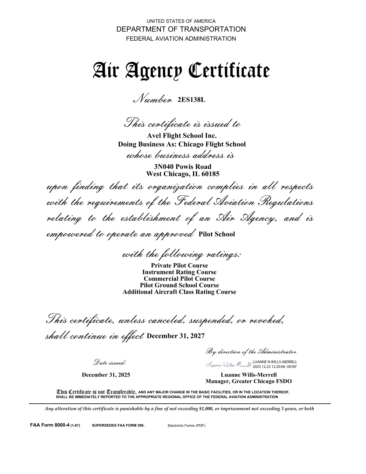 Our flight is listed on the FAA website in the list of approved flight schools: